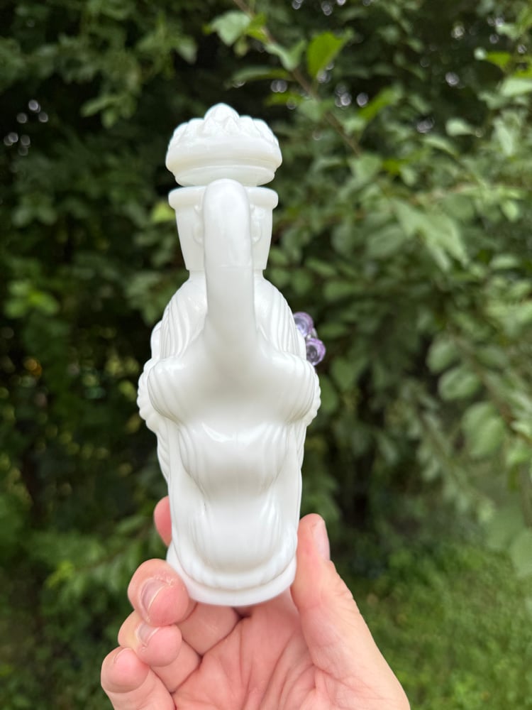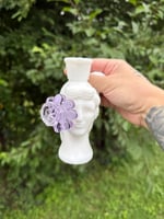 Vintage Avon Grecian goddess decanter, now a water piece! Paired with a purple flower